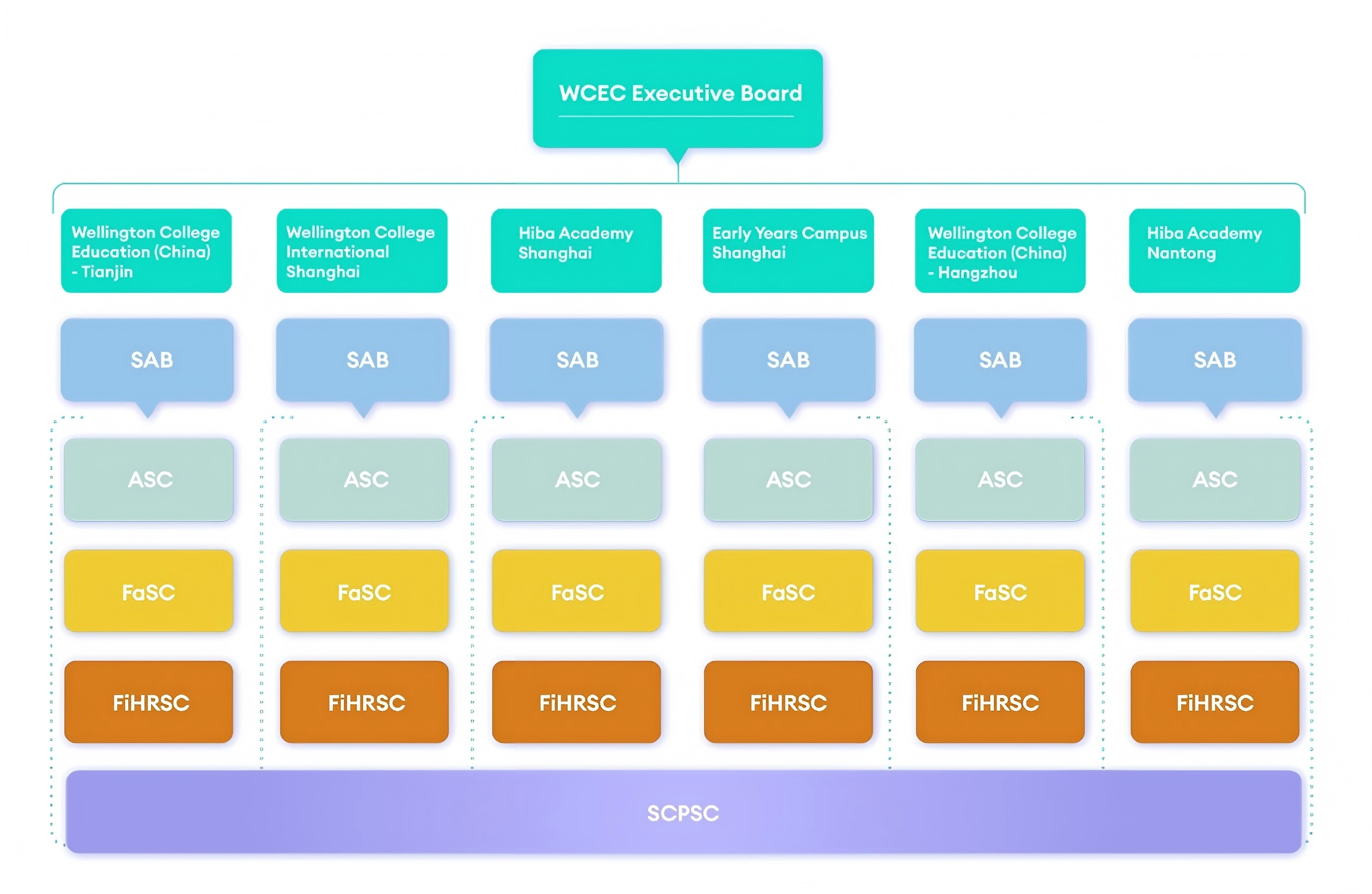 The WCEC Executive Board serves as the top level of governance, approving group-wide policies and overseeing the Central Office. Each WCEC school then has its own SAB, which is responsible for its governance and strategic direction. The SAB handles critical tasks such as hiring and evaluating school leadership, setting the school's development plan and evaluating its progress, as well as monitoring educational and financial performance.